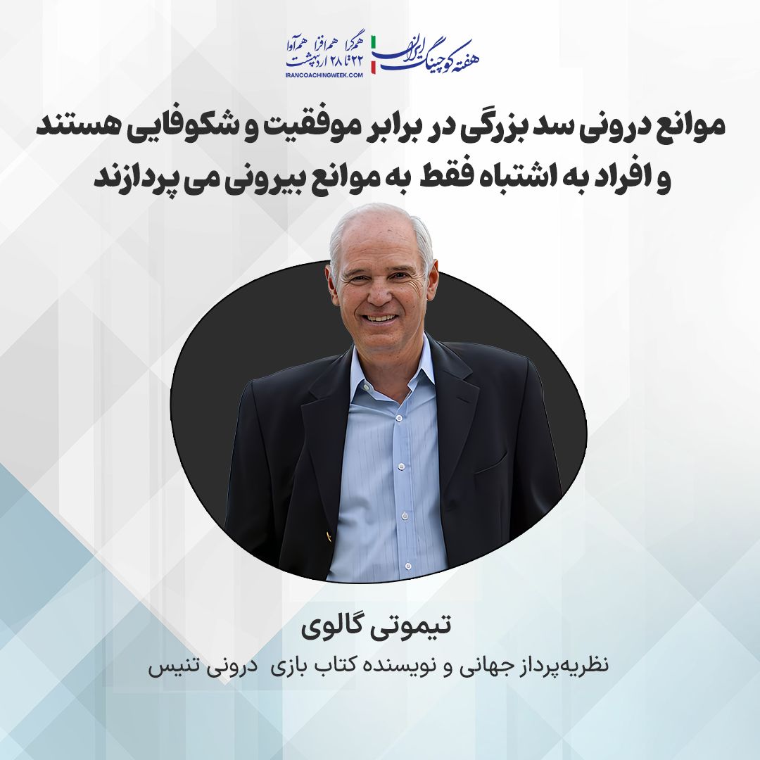 تیموتی گالوی : موانع درونی سدی در برابر موفقیت و شکوفایی هستند و افراد به اشتباه به موانع بیرونی می پردازند.