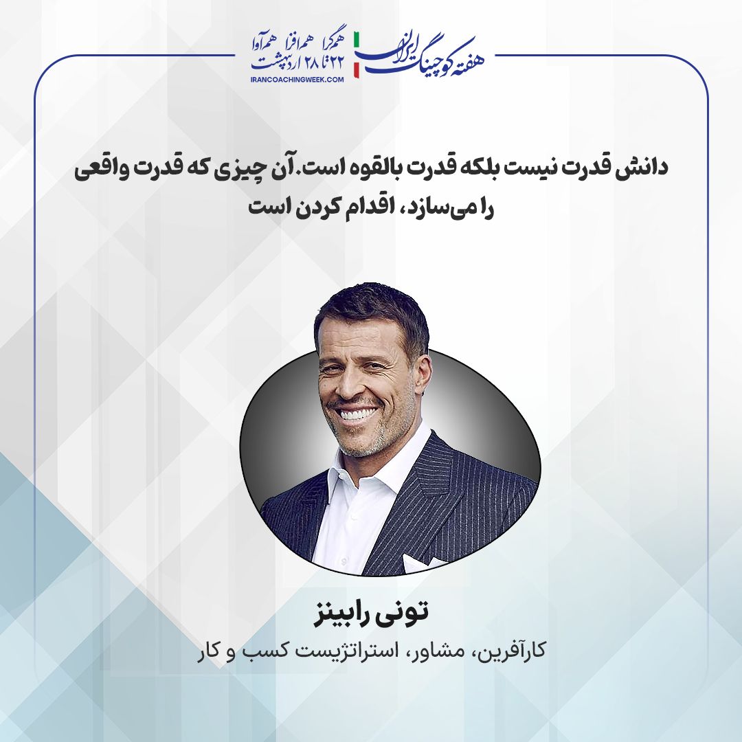 آنتونی رابینز : دانش، به تنهایی قدرت نیست بلکه قدرت بالقوه است. آن چیزی که قدرت واقعی را میسازد، اقدام کردن است».